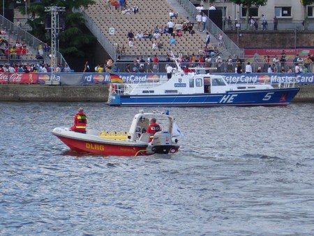 Wenn irgendwo auf einem Fluss eine Veranstaltung ist, dann sind auch die Jungs von der Lebensrettung dabei und passen auf, ob sie vielleicht irgendwo helfen können.