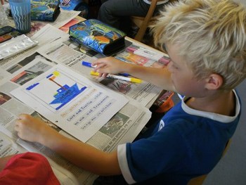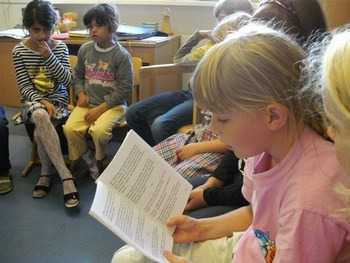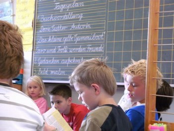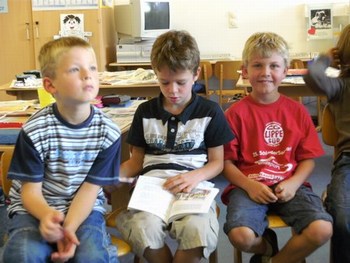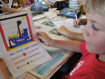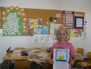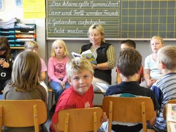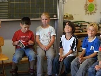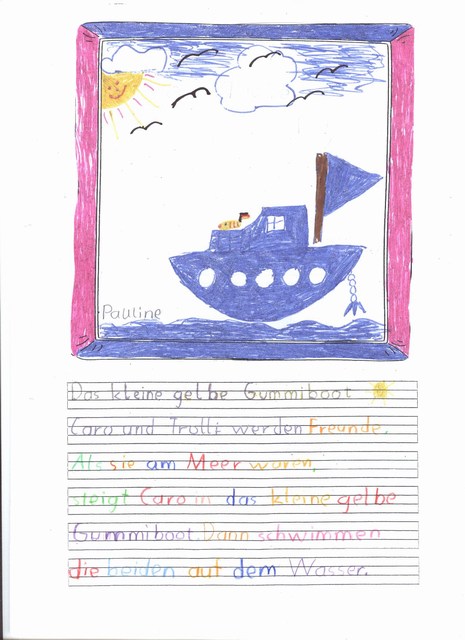 Hallo, liebe Frau Sutter, am vergangenen Freitag habe ich meiner Möwenklasse 2d "Das kleine gelbe Gummiboot", Ihre 1.Ausgabe, vorgestellt. Die Kinder lasen einzelne Abschnitte vor oder hörten mir zu. Wir haben einen interessanten Projekttag daraus gemacht. Nach dem Lesen und Bewundern der bunten Illustrationen stellten wir uns vor, welche Erlebnisse Caro mit Trolli und den Großeltern wohl noch auf dem Wasser haben könnte. Die Schüler malten dazu Bilder und schrieben auf, was sie besonders bewegte. Das möchten sie Ihnen gern zusenden. Außerdem wollen sie sich bald aus dem schuleigenen Computerkabinett in der Kinderecke Ihrer Homepage zu Wort melden. Die 10 Mädchen und 13 Jungen sind schon ganz gespannt auf Ihre 2. Ausgabe.